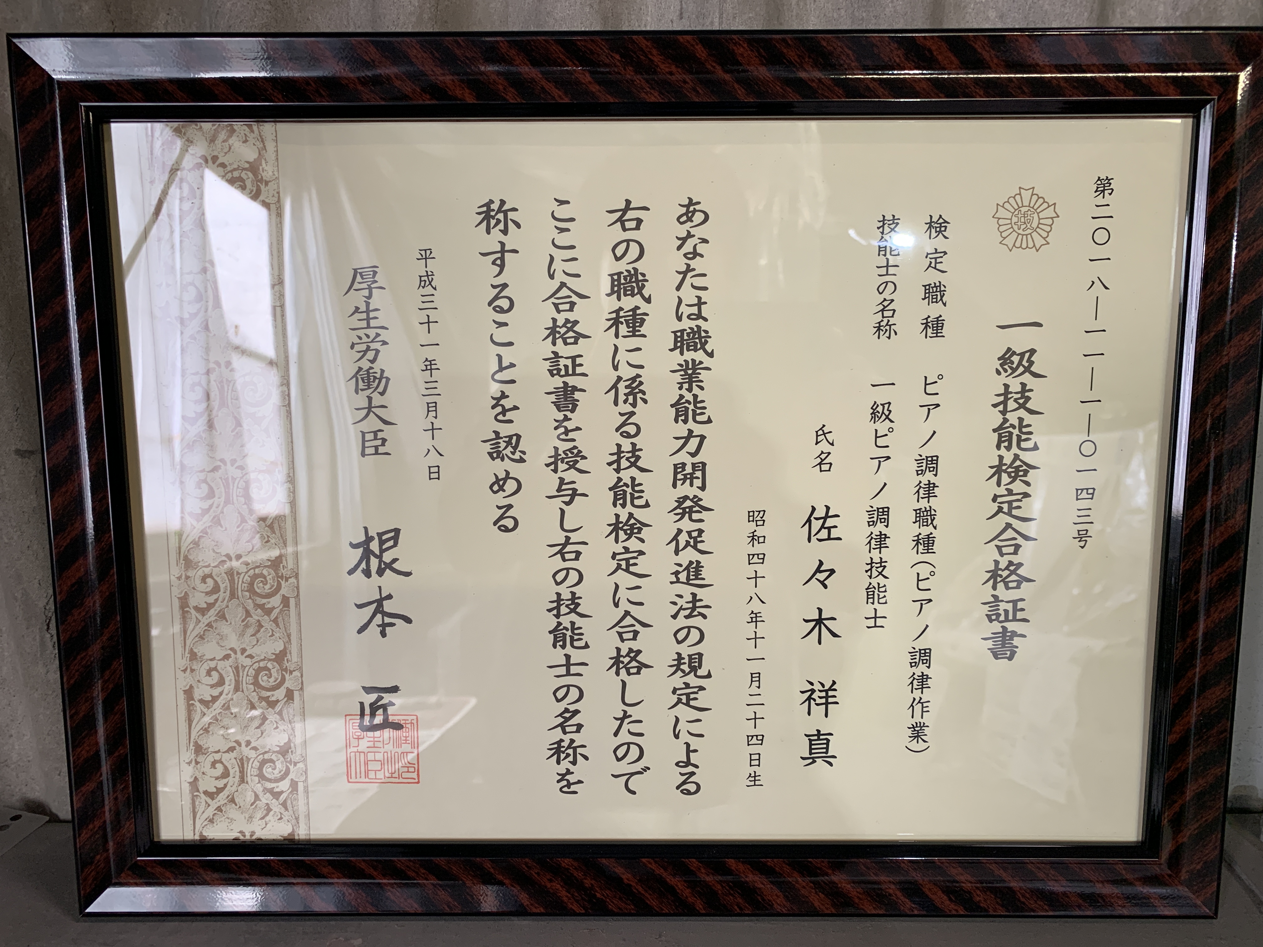 一級ピアノ調律技能士/一級木工塗装技能士